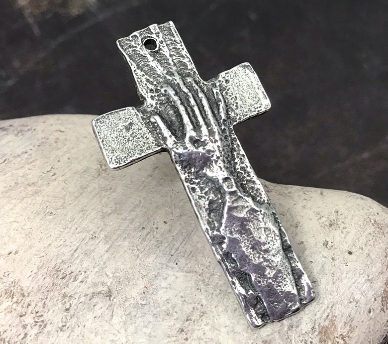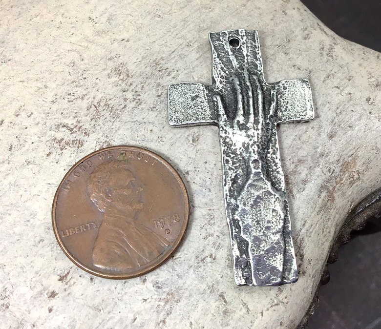 Cross Pendant with Hand, Artisan Jewellery Design, Handmade Jewelry Making Components, Handcrafted, Hand Cast Pewter, DIY Crafting – 48-PP
