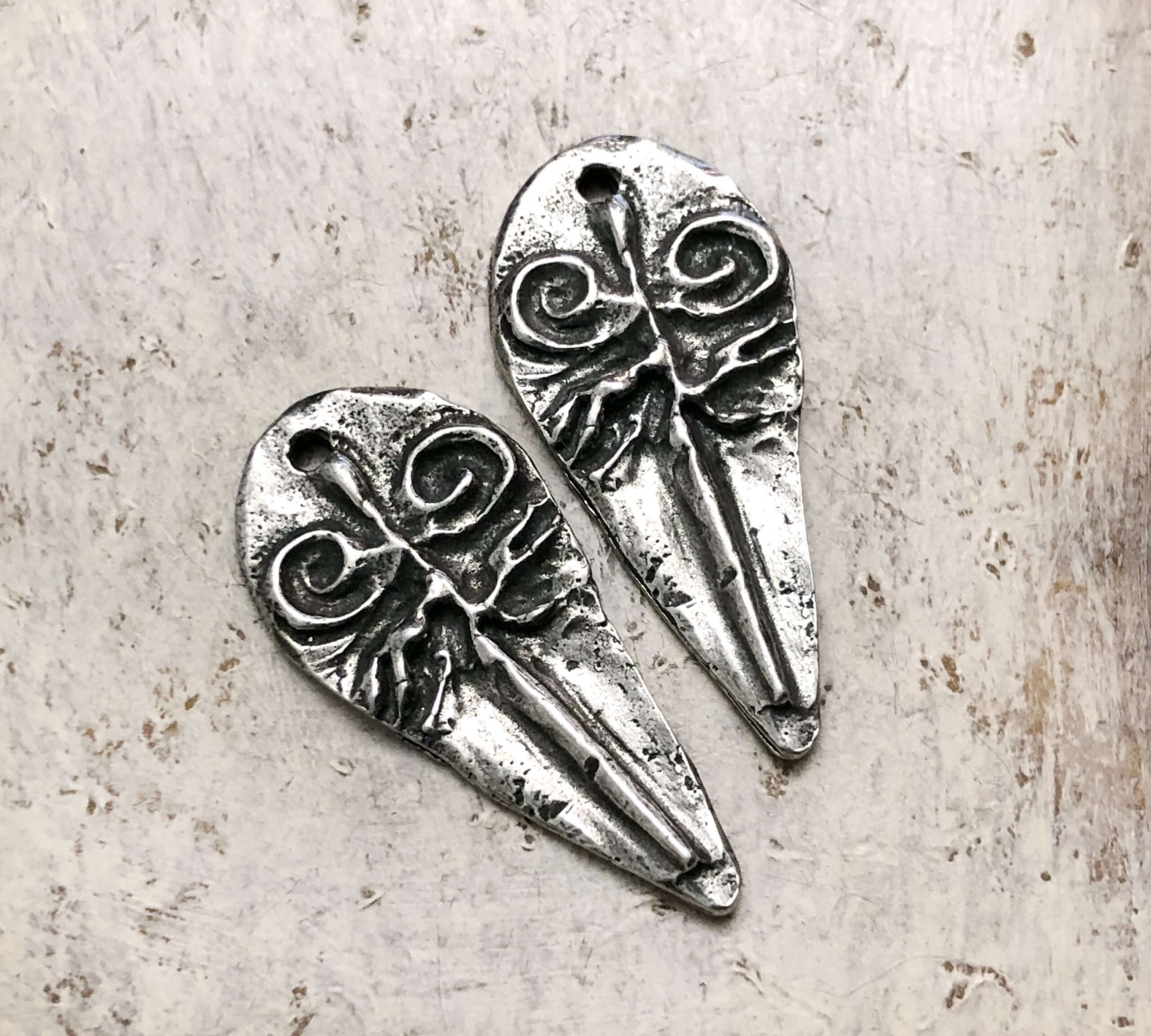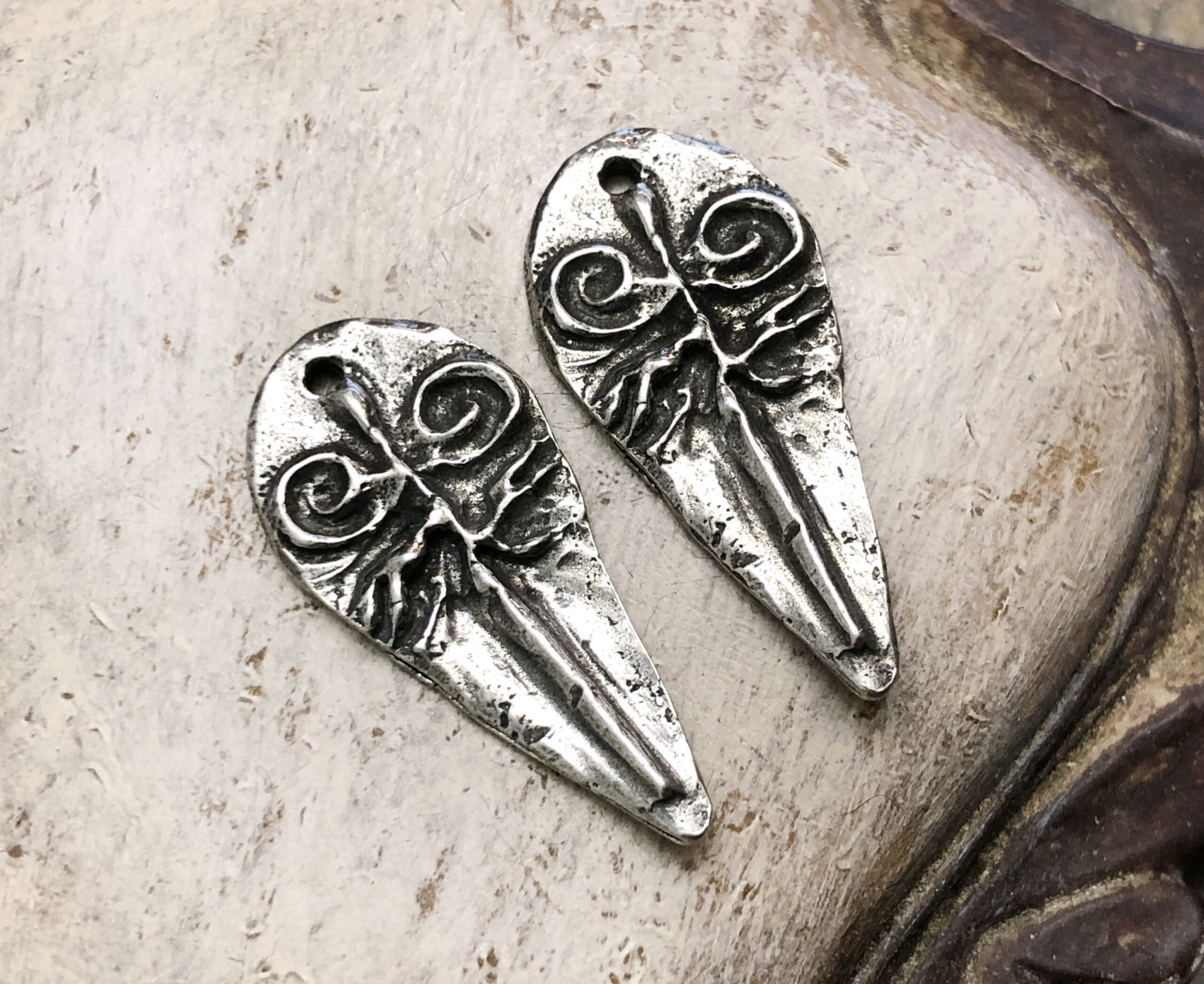 A Note on Our Finish: Please expect slight variances in the shade of the Aged Finish from batch to batch although the photos are a close representation. What this means for you is, if you purchased charms from us more than once, certain of your charms may have a slightly lighter or darker shade from your previous order; or within one order, you may have charm designs that were finished in different batches, so one pair may be a lighter or darker shade, however, each piece in a pair will always match each other.