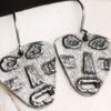 Polished earrings featuring original pewter charms made by us.