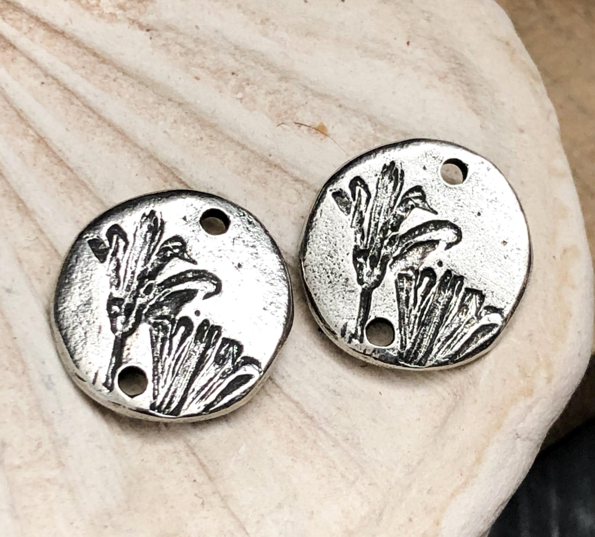 A Note on Our Finish: Please expect slight variances in the shade of the Aged Finish from batch to batch although the photos are a close representation. What this means for you is, if you purchased charms from us more than once, certain of your charms may have a slightly lighter or darker shade from your previous order; or within one order, you may have charm designs that were finished in different batches, so one pair may be a lighter or darker shade, however, each piece in a pair will always match each other.