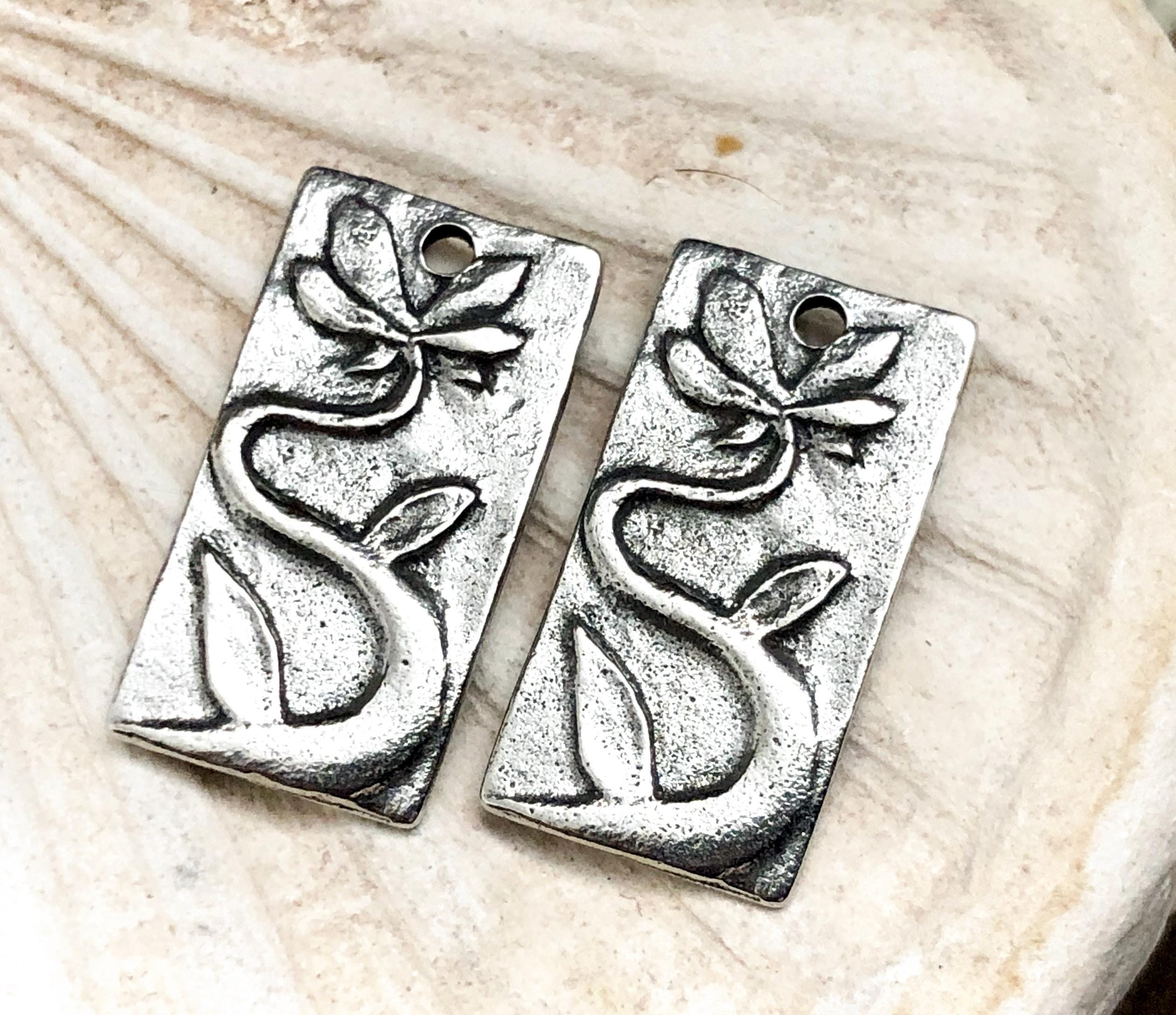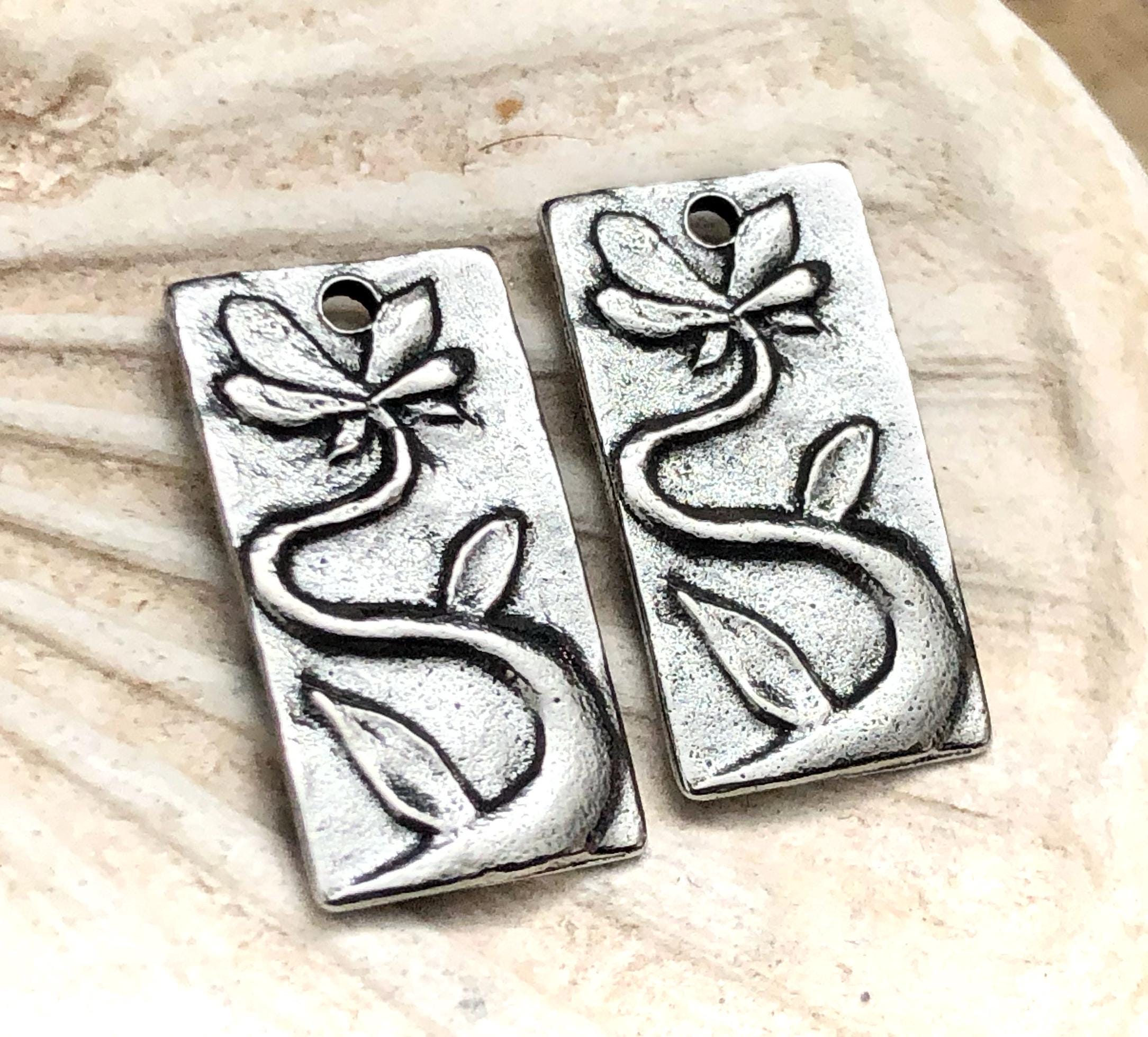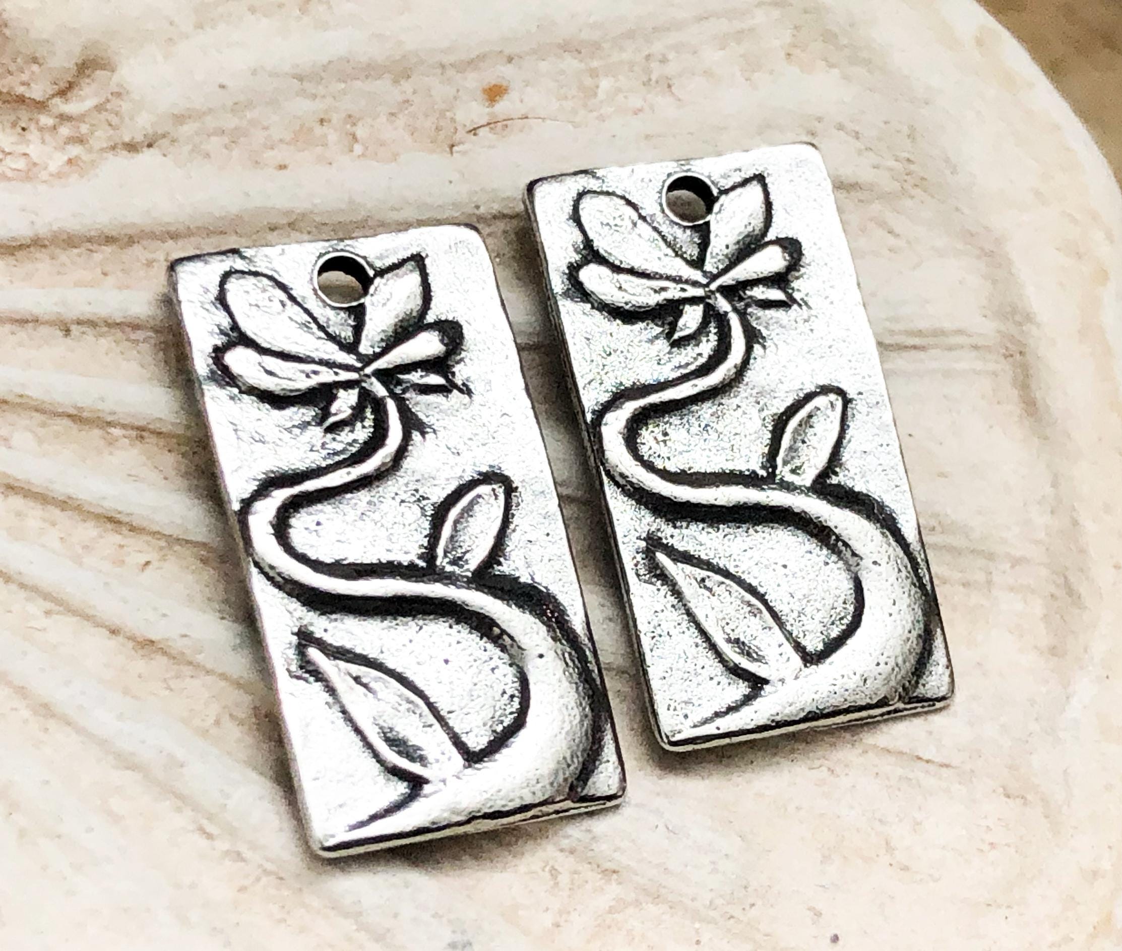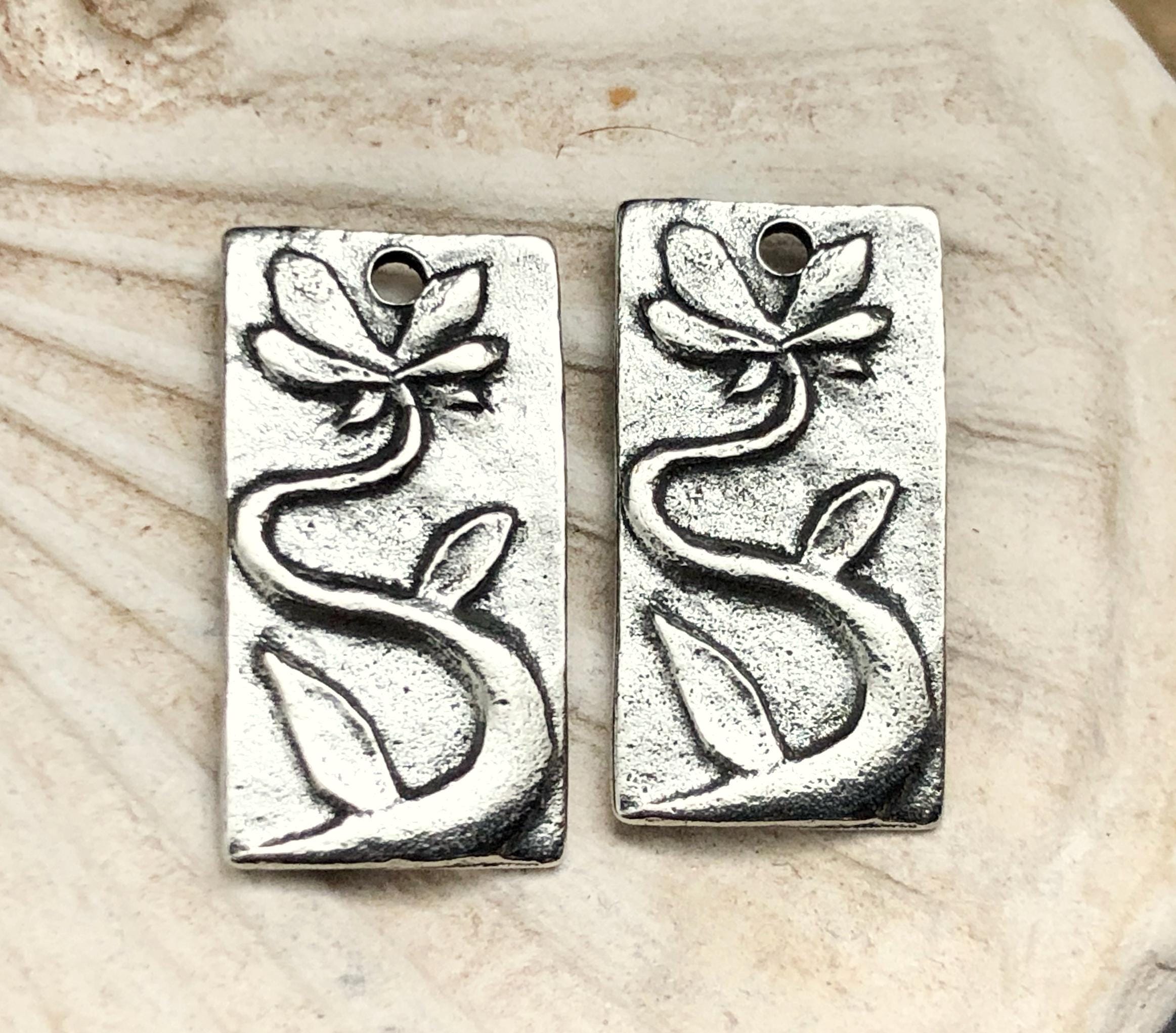 A Note on Our Finish: Please expect slight variances in the shade of the Aged Finish from batch to batch although the photos are a close representation. What this means for you is, if you purchased charms from us more than once, certain of your charms may have a slightly lighter or darker shade from your previous order; or within one order, you may have charm designs that were finished in different batches, so one pair may be a lighter or darker shade, however, each piece in a pair will always match each other.