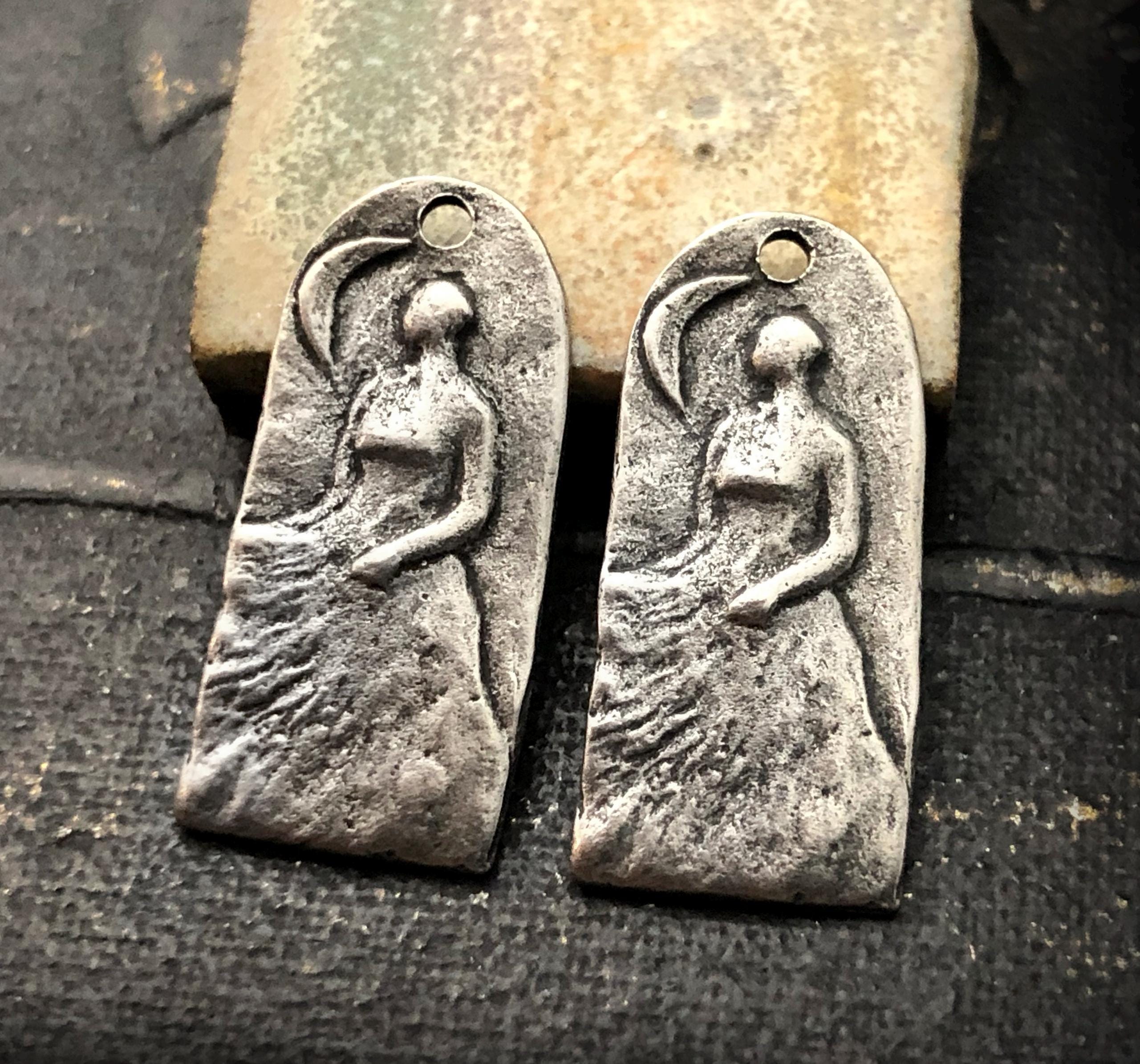 A Note on Our Finish: Please expect slight variances in the shade of the Aged Finish from batch to batch although the photos are a close representation. What this means for you is, if you purchased charms from us more than once, certain of your charms may have a slightly lighter or darker shade from your previous order; or within one order, you may have charm designs that were finished in different batches, so one pair may be a lighter or darker shade, however, each piece in a pair will always match each other.