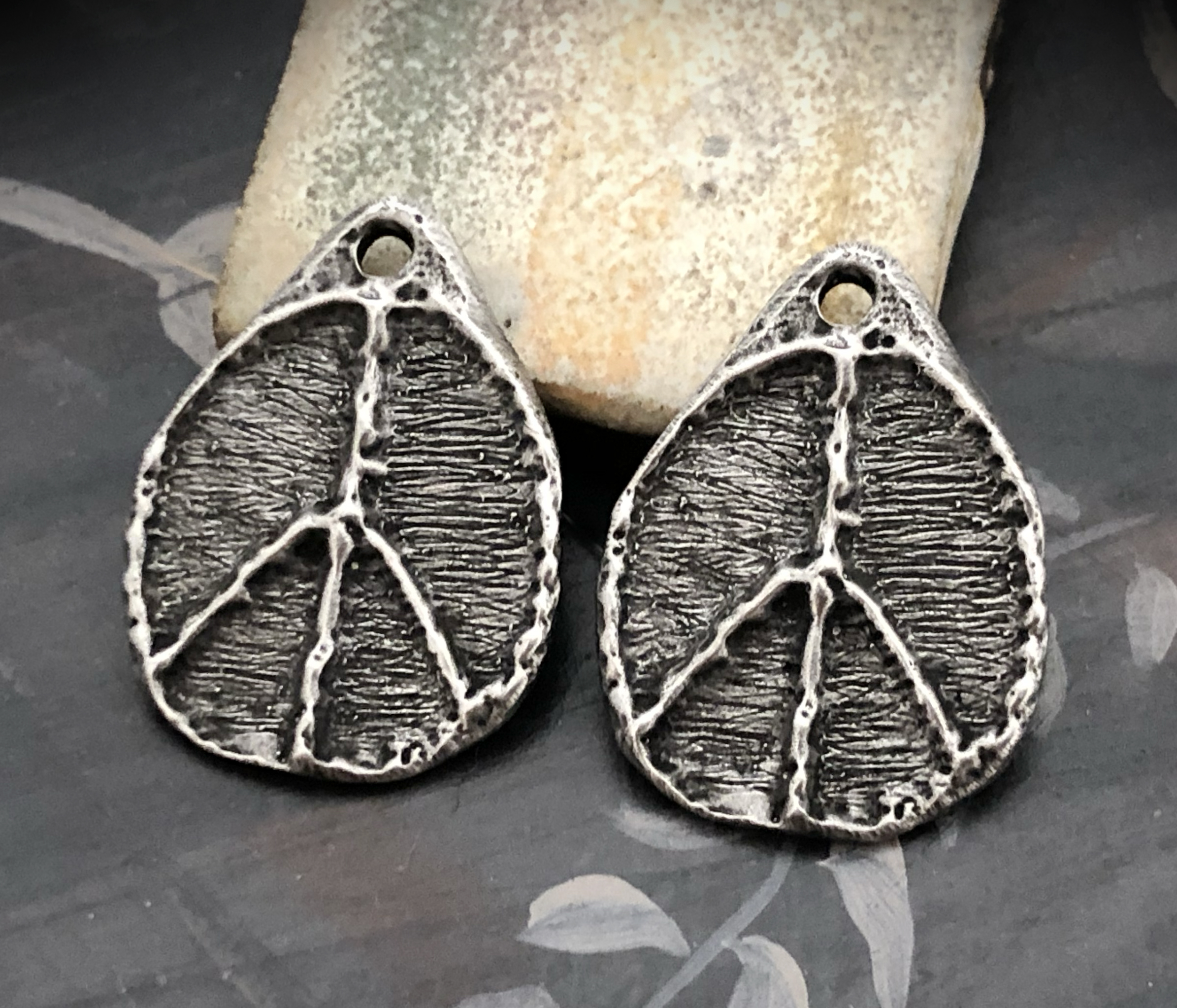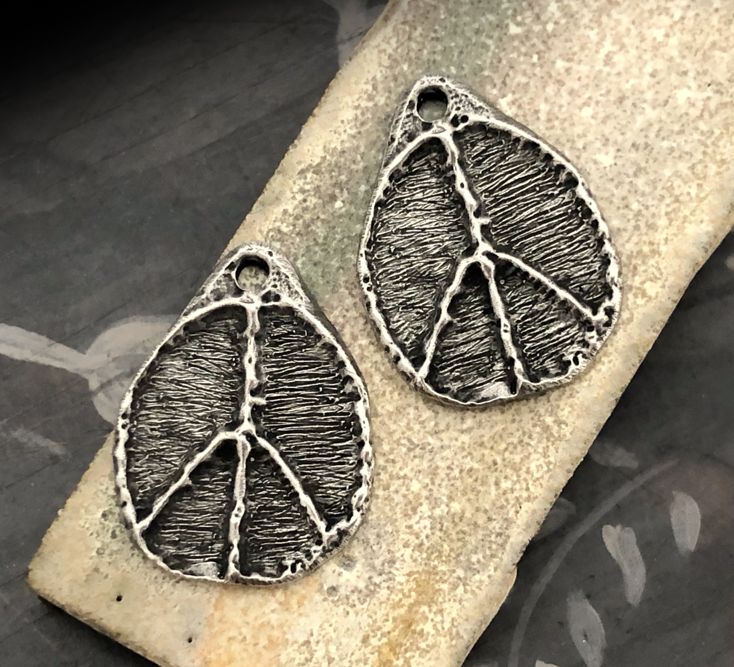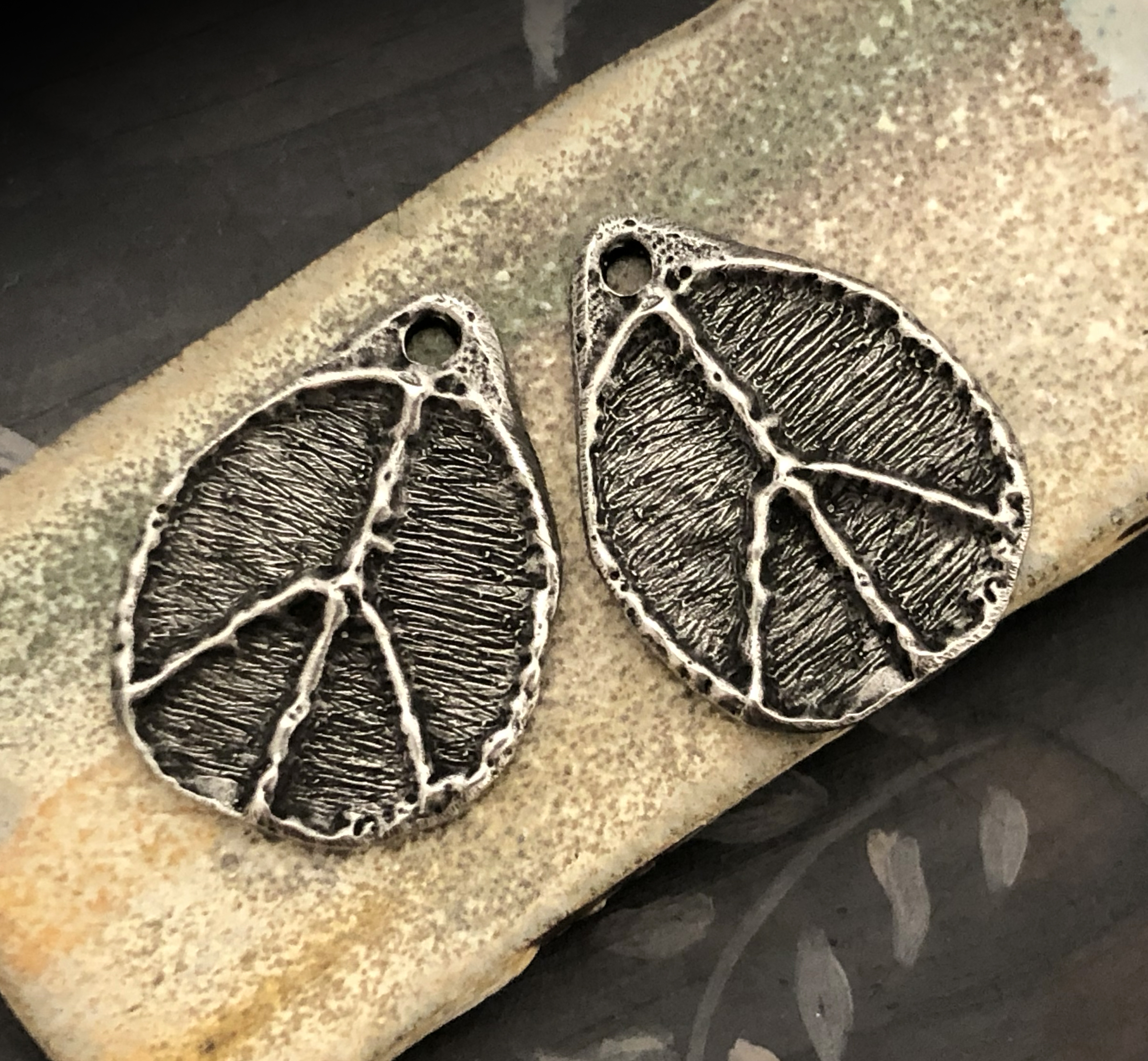 A Note on Our Finish: Please expect slight variances in the shade of the Aged Finish from batch to batch although the photos are a close representation. What this means for you is, if you purchased charms from us more than once, certain of your charms may have a slightly lighter or darker shade from your previous order; or within one order, you may have charm designs that were finished in different batches, so one pair may be a lighter or darker shade, however, each piece in a pair will always match each other.